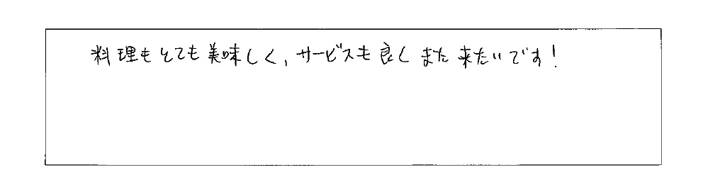 料理も全部美味しく目でも楽しめました。すばらしかったです。