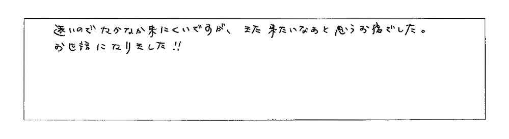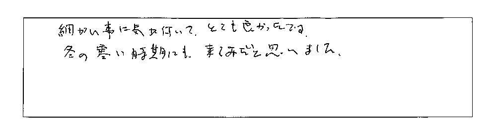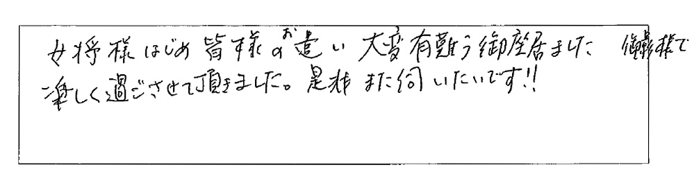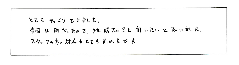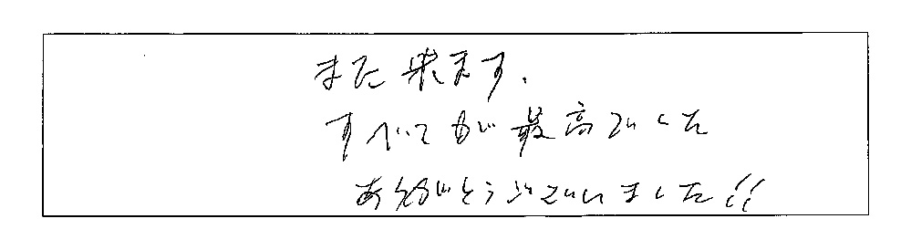 日頃の疲れがとれました。またぜひ来たいと思います。