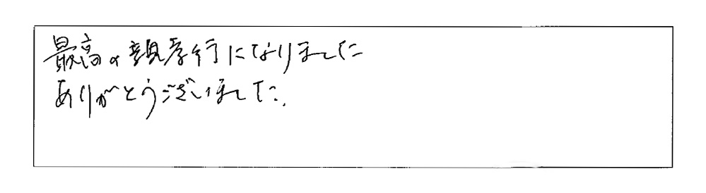 この度は大変お世話になりました。スタッフの皆様のおかげで楽しい旅になりました。