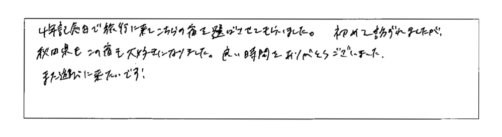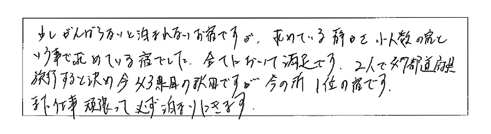 秋田には初めての宿泊で機会があれば、ぜひ泊まりたいです!