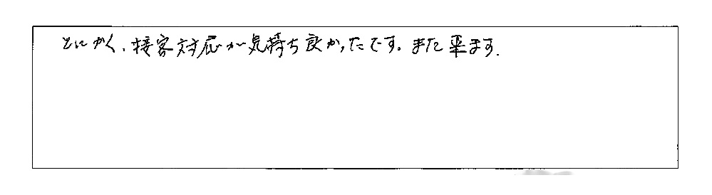 スタッフのみなさんがとても親切で丁寧な接客でした。全員が!