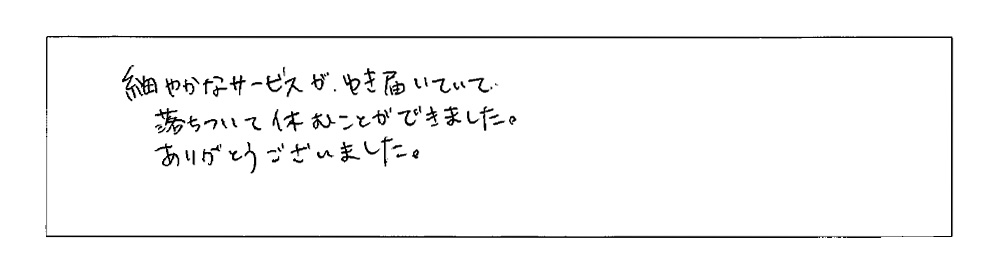 とてもくつろげて穏やかな時を過すことができたこと感謝します。