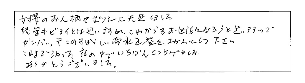親しみやすい接客で地元のお話も聞けて楽しかったです。