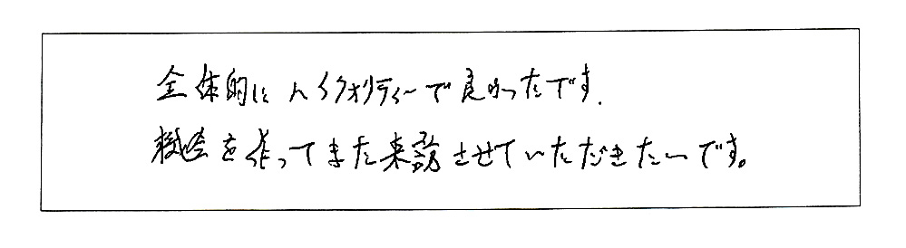 みなさんすばらしいご対応でした。本当にありがとうございます。