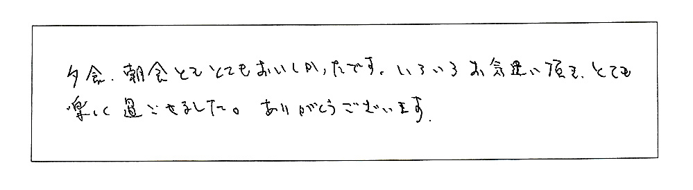 ステキな思い出ができました。ご飯もすごくおいしかったです。