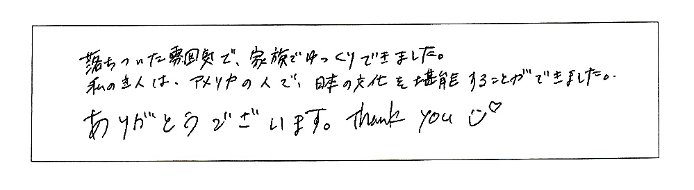 夫婦にとっての素晴らしい一日をありがとうございました。